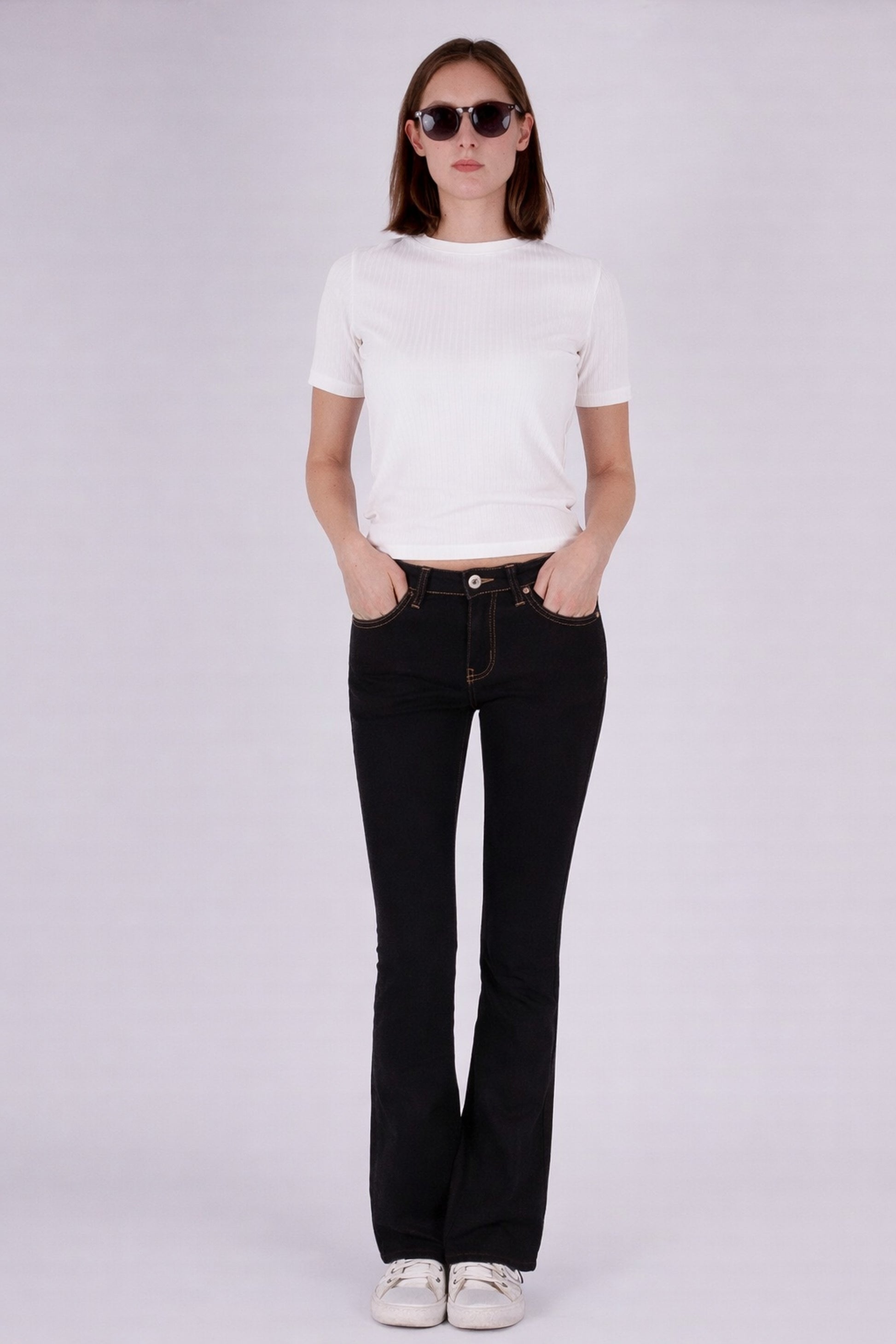 Fraternel Damen Bootcut Jeans Low / Mid Rise Five Pocket H035