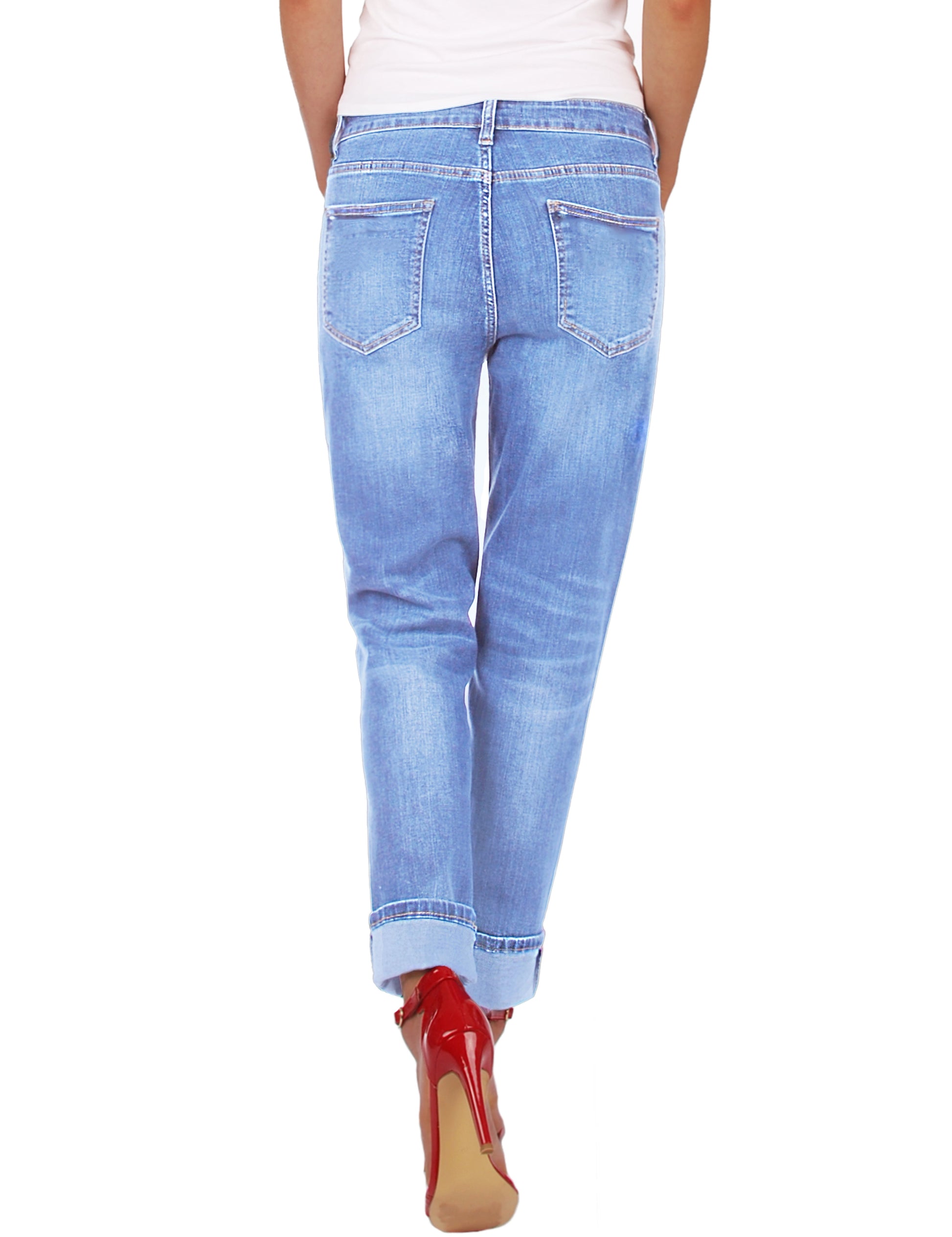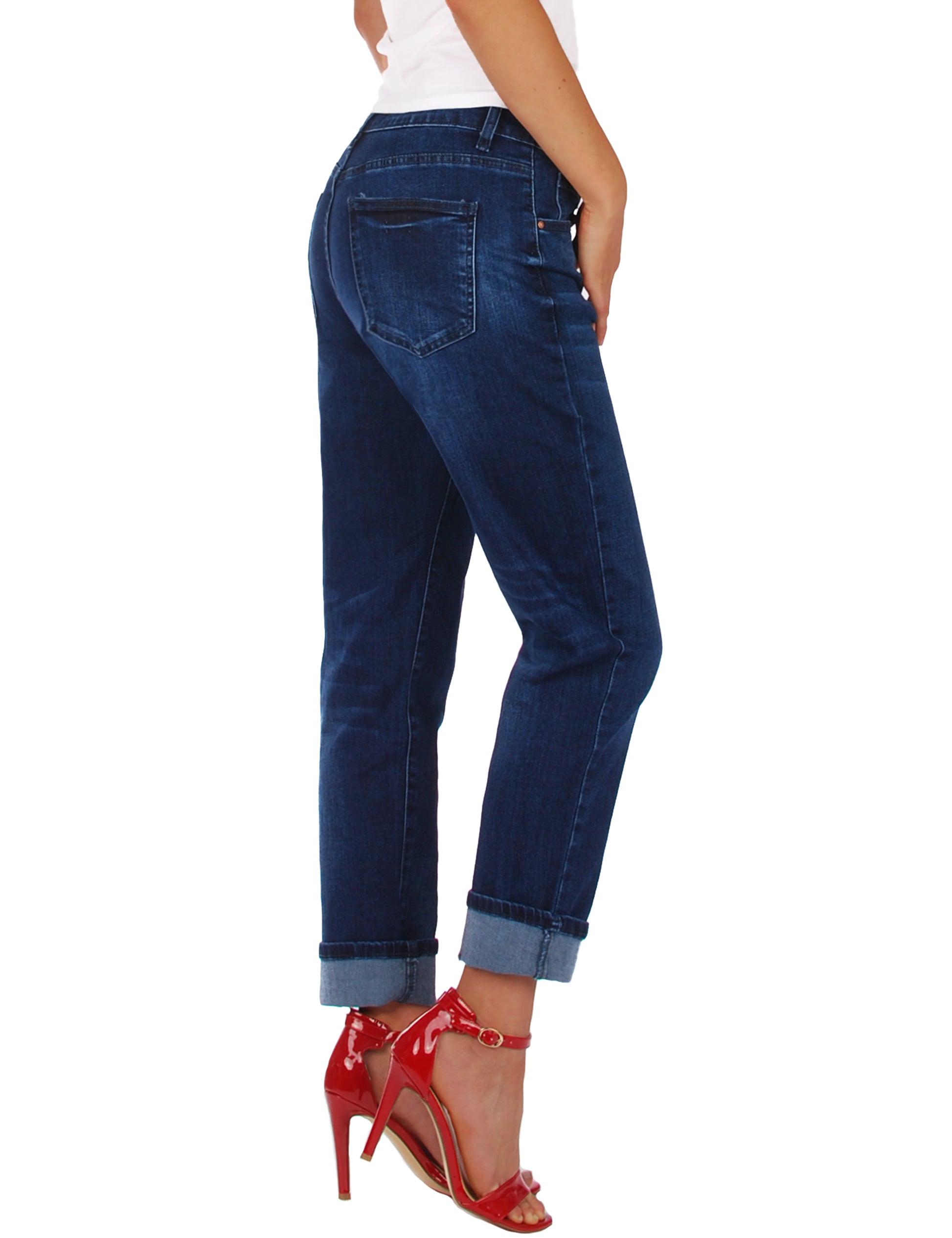 Fraternel Damen Boyfriend Jeans Loose Fit im Used Look – Relaxed Baggy Five Pocket Denim H085
