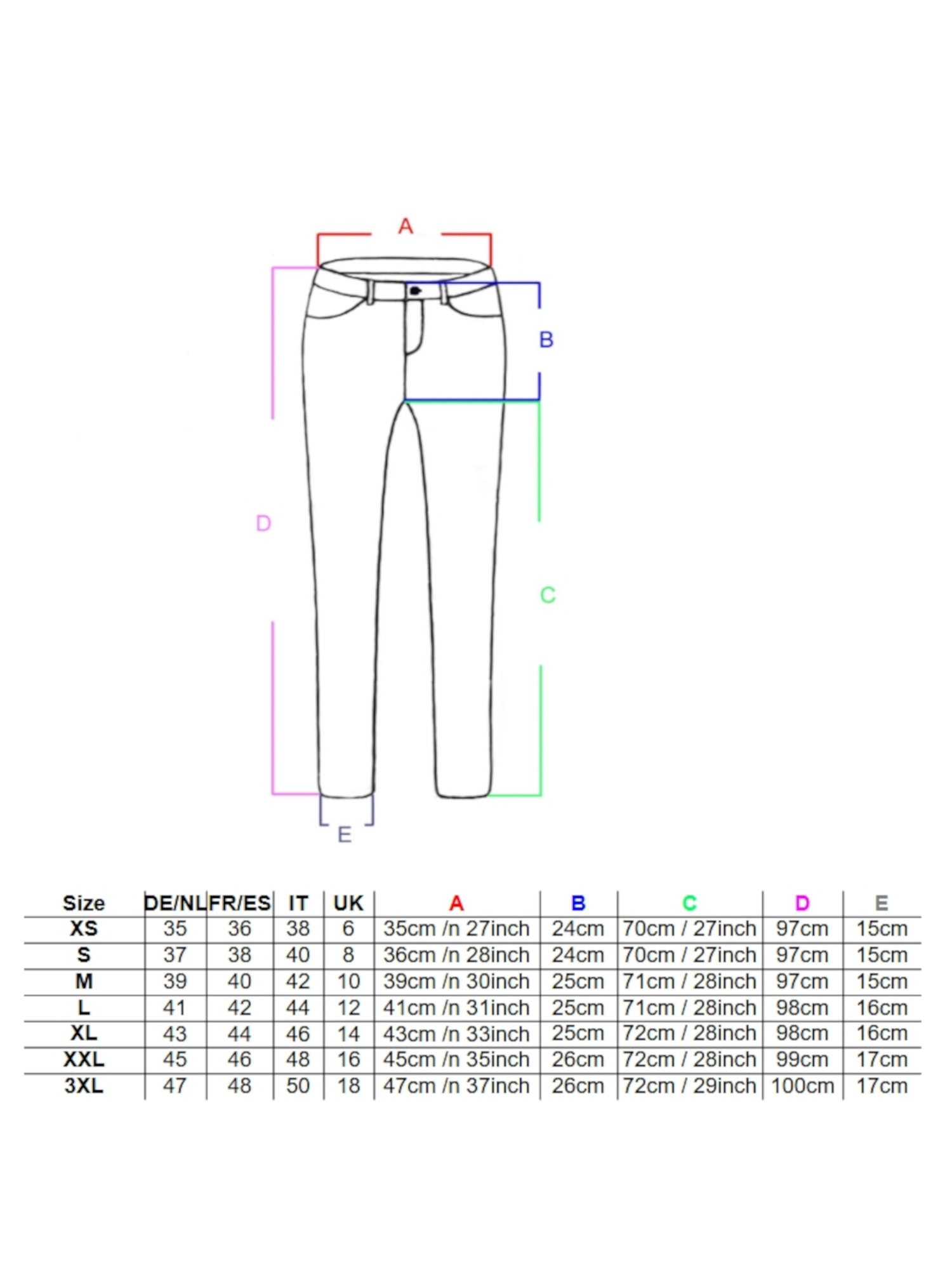 Größen: XS/34 – XXXL/46